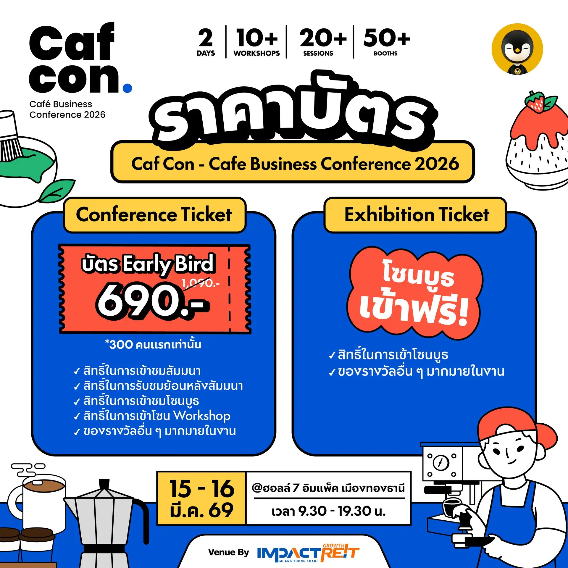 15-16 มีนาคม 2026 นี้ Torpenguin ชวนอัปเดตทุกเรื่อง ‘ธุรกิจ’ ในวงการคาเฟ่ และร้านกาแฟ ที่ Caf Con 2026 – Cafe Business Conference 2026