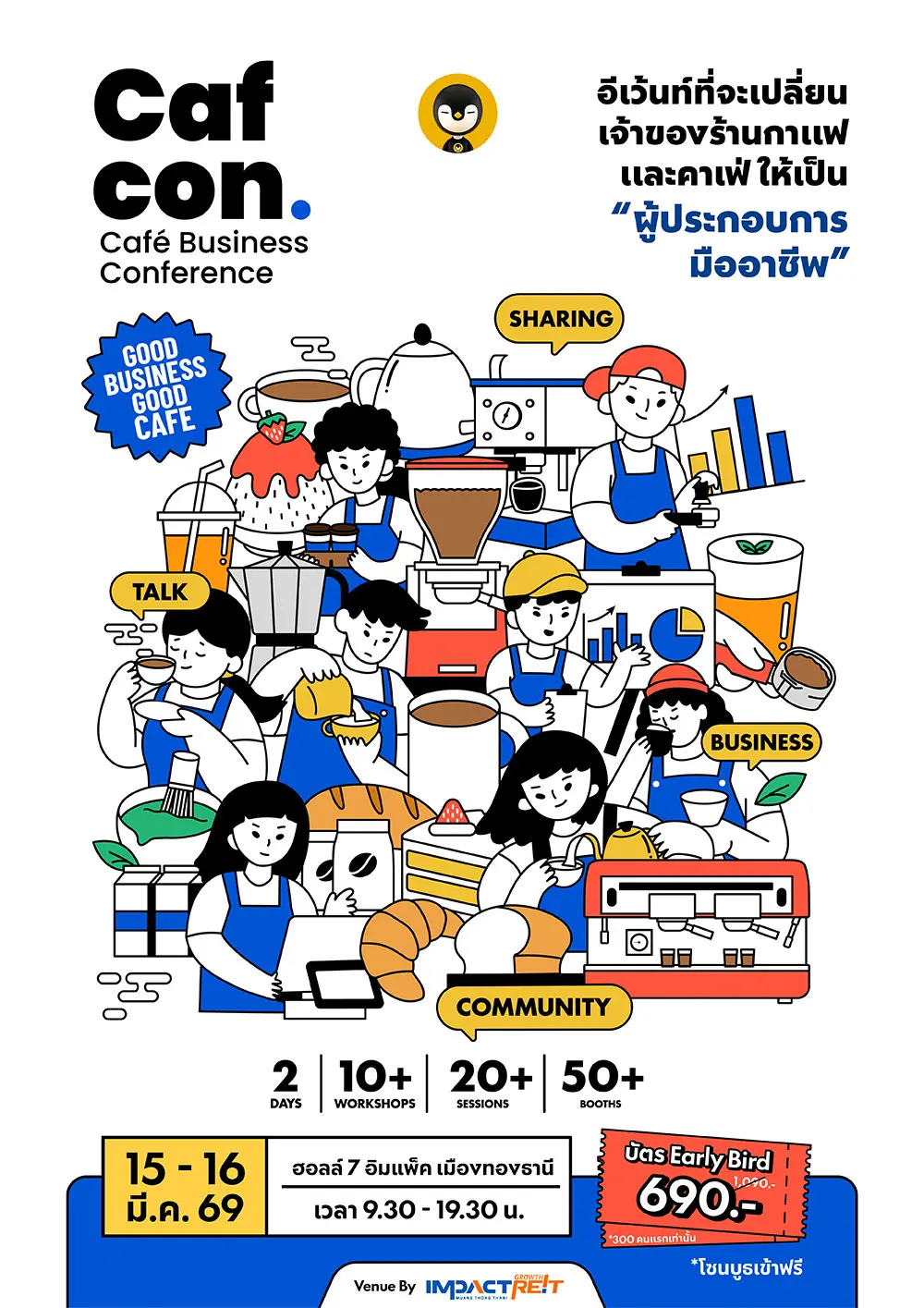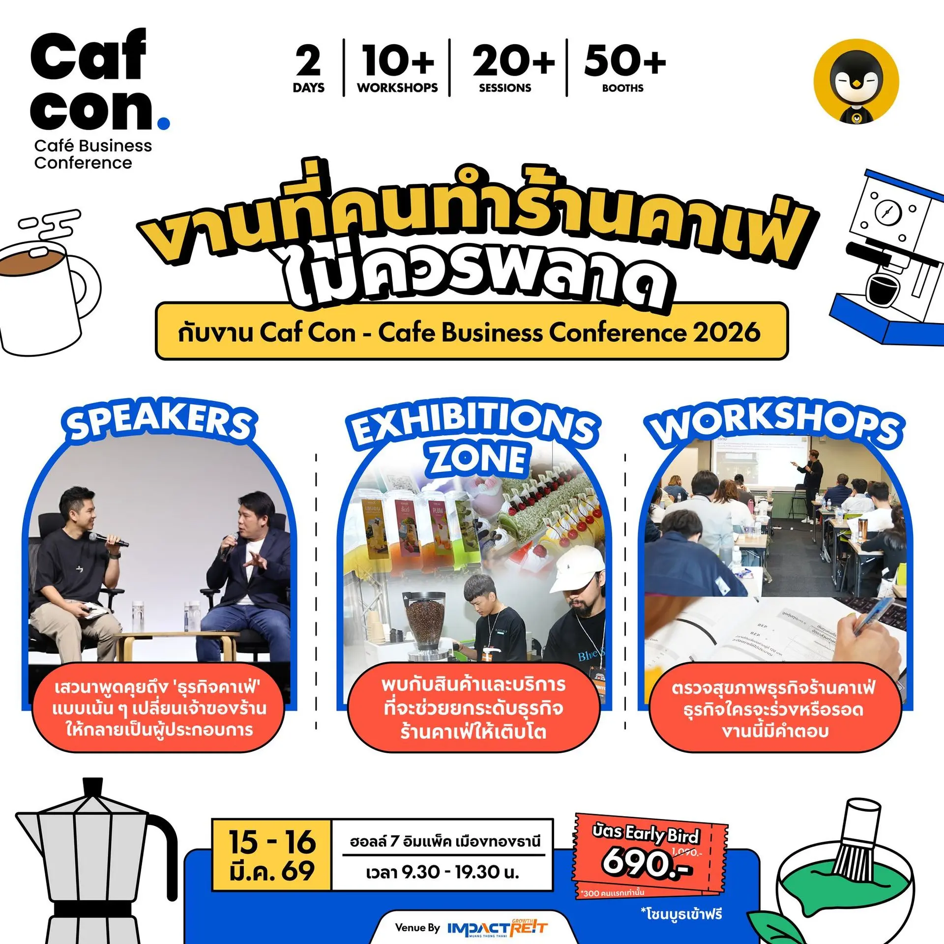 เวทีรวมการพูดคุย แชร์ประสบการณ์ และแนวคิดจากผู้เชี่ยวชาญในวงการครอบคลุมทั้งธุรกิจ คาเฟ่ อาหาร เครื่องดื่ม และการพัฒนาร้านเพื่อจุดประกายไอเดียและเปิดมุมมองใหม่ให้กับผู้ประกอบการ